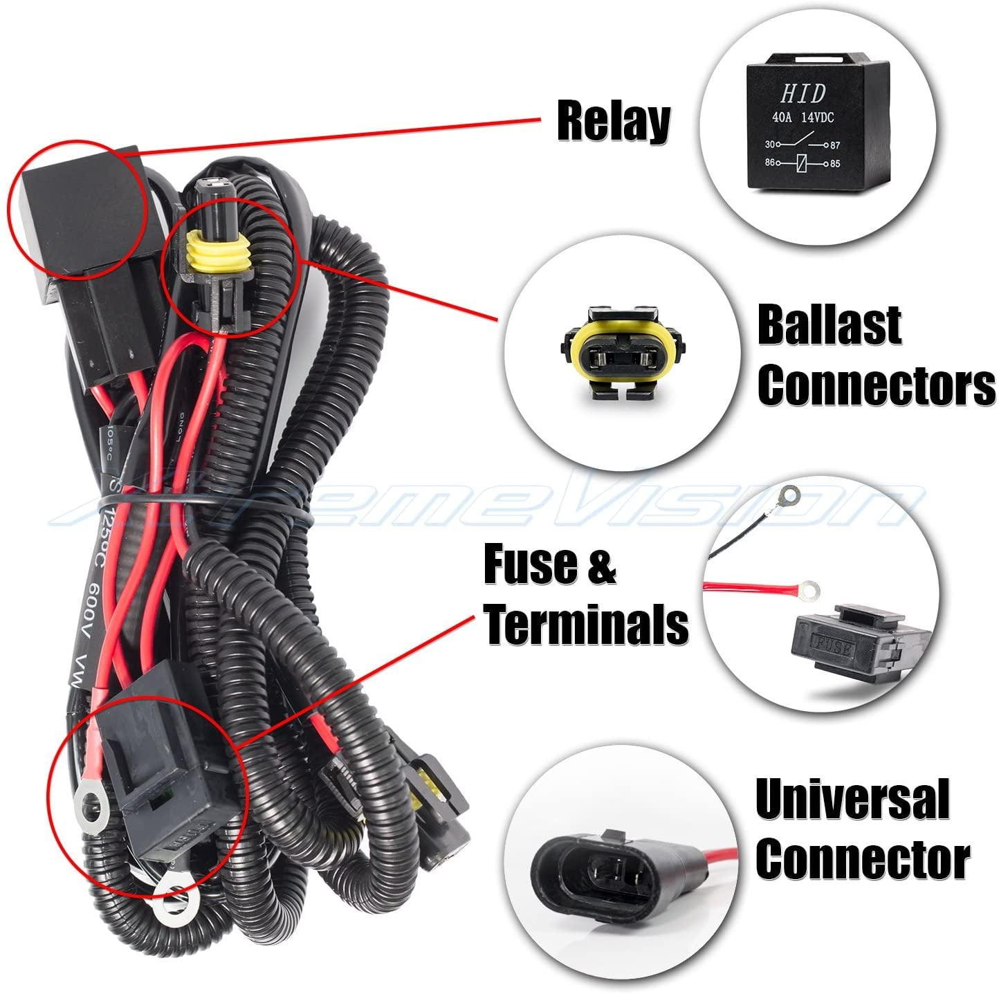 Xtremevision H11 H8 H9 880 Hid Battery Wiring Relay Harness 12v 40 Amp 35w 55w Walmart Com